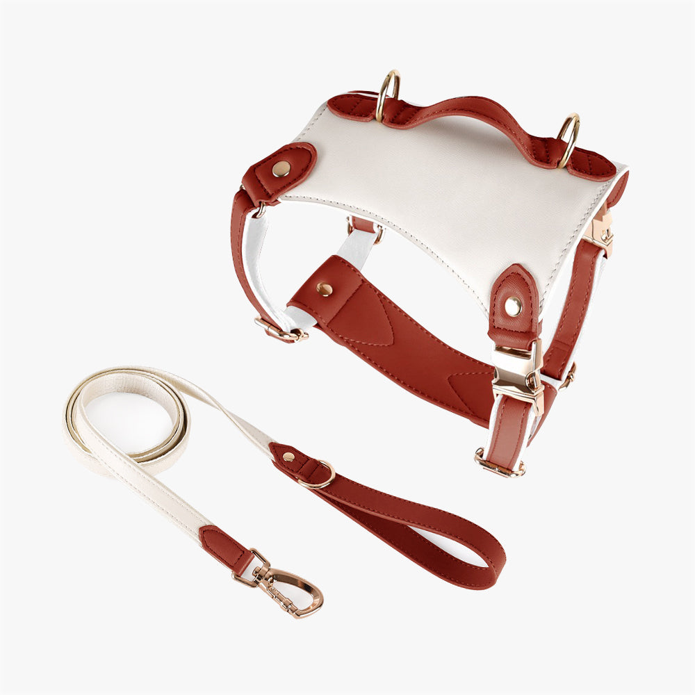 Elevate your pet's walking experience with our Elysian Leather Harness and Lead Set. Designed to combine timeless style with practical functionality, ensuring every outing is both luxurious and secure. Meticulously crafted from premium vegan leather, the set showcases our commitment to quality and aesthetic appeal.